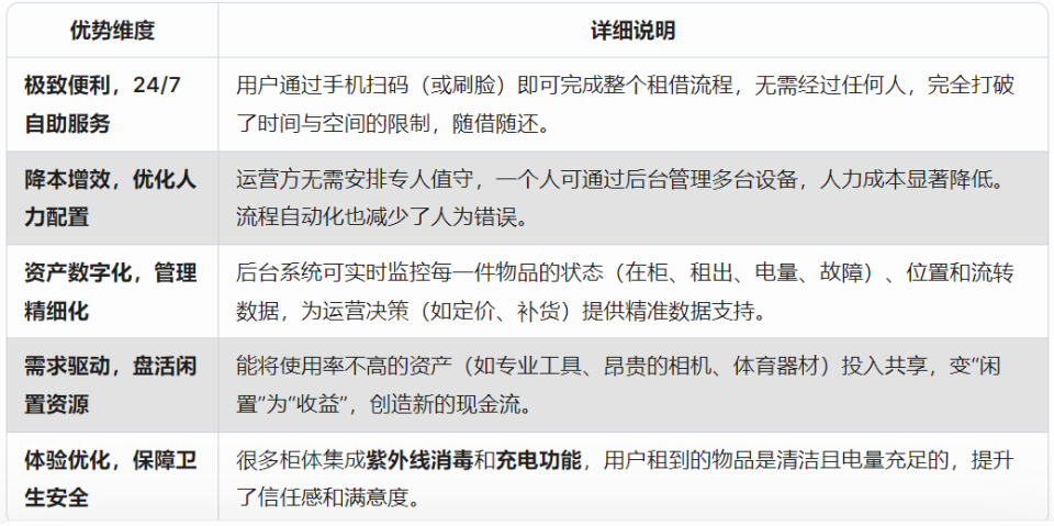 智能共享租赁柜的核心优势在于其通过技术手段,大幅提升了资源流转的效率和用户体验。