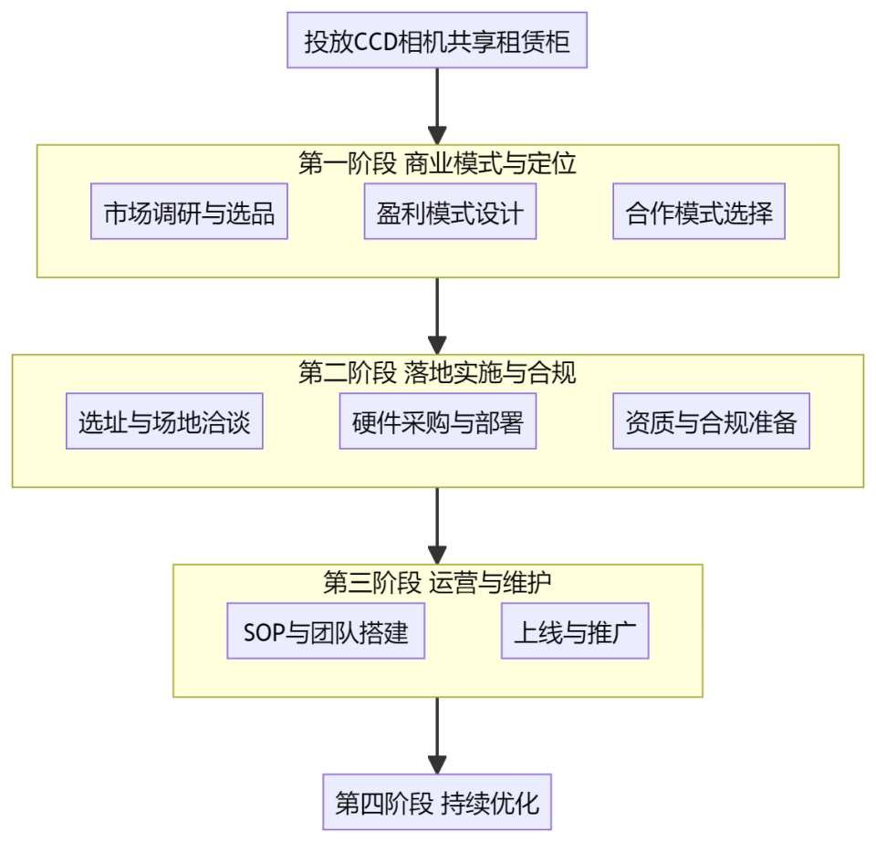 总结一下 投放CCD相机共享租赁柜,前期准备是系统工程,需综合考虑市场定位、场地质量、硬件技术、资金实力、运营能力和风险管控。